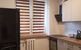Mieszkanie po generalnym remoncie. Okna PCV z roletami dzień - noc. W całym mieszkaniu na podłodze panele, a na ścianach gładź i malowane. Kuchnia z nowoczesną zabudową meblową w glazurze nowego typu. Łazienka z wc kompletnie wyposażona, w polerowanym gresie dużego formatu. Nowa stolarka drzwiowa.